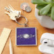 Tryckt Lila Croc and Pewter Monogram Keychain Fyrkantig Silverfärgad Nyckelring