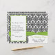 Det här svartvita bröllopsprogrammet eller serviceordern har en chartreuse-grönt tryckt på det, tillsammans med ett tryckt diamantjuvel på det som matchar den bröllopsinbjudning som visas nedan. Om du behöver hjälp med att få informationen att passa eller att anpassa den på rätt sätt kan du skicka e-post till niteowlstudio@gmail.com. Dokumentet skrivs ut som det visas på bildskärmen. Zazzle redigerar INTE för typos eller justering osv. ****NOTERA ATT den högre klass-pappra är ett kort lagrar och inte viker ihop sig (spricker formgivningen längs vecket, även om du förpoängterar det med ett vasst kant).