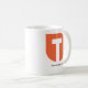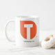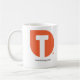 Kaffemugg med Tim'sens symbolen för strategiTeardrop "T" på två sidor med nedanför URL