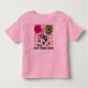 Småbarn, som är gammala roterande tre år och älskar ska kor och boskap, gläder, i att ha på sig denna T-tröja för födelsedagen för anpassadekon 3rd med en ko i en partyhatt, rosor och gröntballonger och polka dots!