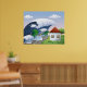 En tsunamivåg ska tvätta över ett hus. Den här designen ser ut att vara verkligen på dessa Poster
