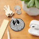 En stiliserad vit kran på svart bakgrund. Japanska ord för kran är tsuru, som är en symbol för livsglädje och bra förmögenhet för japanerna