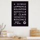 Toronto Transit Commission poster rollsign stil. Funktionerna stannar längs Yonge-tunnelbanan. Förteckning över station på poster: "Southbound"-skylten, Lawrence, Eglinton, Davisville, St. Clair, Summerhill, Rosedale, "Exit and Buss"-skylten.