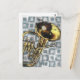 Tuba-målning med en tuba på grått-blå kvadratbakgrund i lös målning stil.