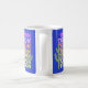 Kaffet mugg är en färgad blå med ett vitt handtag och en vit fälg. Det gör det idealiskt för kaffe eller te på morgonen. Det är mikrovåg och diskmaskin säker.