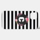 Apple iPhone 8/7 fodral som har ett svartvitt randmönster med en blom- monogramdesign i centrera. Du kan personifiera detta fodral, genom att tillfoga ditt namn eller märka med sina initialer genom att använda den skräddarsy mallen.