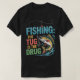 Denna svarta t-shirt illustrerar på ett dynamiskt sätt en person som fiskar nattetid eller i villkor med lågt ljus, bär hatt och ansikte och rullar i stor fisk med rött fenor. Ovanför illustrationen visas ord "FISHING" i ett fet, orange och gult övertoningsteckensnitt. Nedan skrivs frasen "TUG IS THE DRUG" i ett mindre, rött teckensnitt. Bakgrunden visar mörk vatten med subtila ljusreflektioner. I denna plan jämförs humoristiskt en fiskbogserings upphetsning på linjen med en drogs beroendeframkallande karaktär.