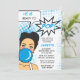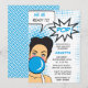 Fira i djärv, lekfull stil med denna "Bubble Gum "Ready to Pop""-födelseshower-inbjudan! Med en rolig popkonst-vridning spelar denna design kreativt på den dubbla betydelsen av "pop" - både en bubbelgummibubbla som är redo att spricka och en blivande mamma som är redo att välkomna sin lilla! Den livfulla blå färgpaletten, inspirerad av klassisk popkonst, gör denna inbjudan iögonfallande och full av energi. En retroinspirerad kvinna blåser en stor bubbelgummibubbla mot en krispig vit bakgrund med lekfulla blå prickar, medan svart seriealbum-inspirerad typografi visar dina anpassade födelseshower-detaljer.