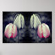 Fantastiskt rosa tulpanpar med kvardröjande regndroppar som gjorts i svartvitt med partiell abstrakt i färg spegel. Blomsterfotografi av Susan. Om du vill ha mer blommigt, djur och naturen poster och skriver ut kan du gå till min poster gallery Smilin'Ögon Poster. Den här bilden finns på många kort och produkter i min huvudbutik Smilin'Ögon Treasures.