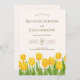 Denna vackra inbjudan och inbjudan till elegant är dekorerad med illustrationer med temat "gult tulips". Både fram- och baksidan är omsorgsfullt designade och gult och grönt färg blandas på ett harmoniskt sätt. Den har kalligrafi, sans serif, serif typsnitt. Du kan ändra det och använda det.