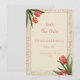 Föreställ dig ett Spara datumkort med en enkel utformning av eleganten "Tulip Tango". Kortets gräns är försedd med ömtåliga små blommor, som påminner om tulpaner, som tillför en charm och sofistikering. De här små detaljerna i blommigten skapar en romantisk vibe som framkallar känslor av kärlek och firande.