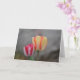 Det här anteckningskortet har vackra godisstrimlade tulippar med mjuk bakgrund.