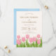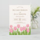 Denna vackra och eleganta inbjudan är dekorerad med illustrationer med temat rosa tulpaner. Både framsidan och baksidan är noggrant utformade, och de rosa och gröna färgerna är harmoniskt blandade. Den har kalligrafi, sans serif- och serif-typsnitt. Ändra gärna och använd den.