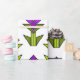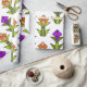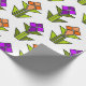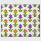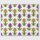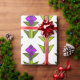 Den här pappra inslagningen har en konsthändelsemönsdesign som är gjord av diamanter, trianglar och polygoner som skapar tulpaner i orange och lila med grönt och löv.