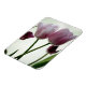 Ett livsfoto av rosa-tulpaner och röd ros på framsidan av ett fönster. Copyright ©Kimberly J Tilley.