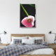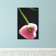 Ett livsfoto av en färsk klippt rosa-tulp, med långa gröntar, placerad på svart tyg. Copyright ©Kimberly J Tilley.