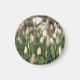 En stor grupp av tulpaner börjar blomma i en park i vår, konstfotografering.