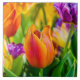 Färgfulla tulpaner på en flodbädd. Så gott som hela regnbågen färg finns. En ljus och positiv blommigt-scen. Makrofotografi.