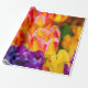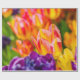 Färgfulla tulpaner på en flodbädd. Så gott som hela regnbågen färg finns. En ljus och positiv blommigt-scen. Svällning papper.