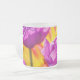 Färgviolett, lila, rosa-tulpaner på en flowerbed. Så gott som hela regnbågen färg finns. En ljus och positiv blommigt-scen. Makrofotografi.