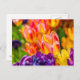 Färgfulla tulpaner på en flodbädd. Så gott som hela regnbågen färg finns. En ljus och positiv blommigt-scen. Makrofotografi.