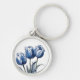 Tulips i Delft Blue Rund Silverfärgad Nyckelring