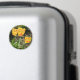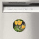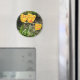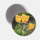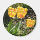 Den här magneten har ett foto av några söt gult-tulpaner med röd låga mönster på dem, som baskar i ljuset av sol i min trädgård.