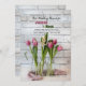 En inbjudan till en avslappnad till bröllop brunch, luncheon, möhippa, födelsedag med mera. Bakgrunden för vita tegelstenar är tre burk fyllda med doftande, rosa tuliper och vit hyacint. (Pix). <br/>() Kortet är enkelt att anpassa med din text, ditt teckensnitt, ditt teckensnitt, färg och ditt val av sex pappra typer.<br/>() Inte exakt vad du är tittar för? Alla våra produkter kan vara designad anpassningsbar för att uppfylla dina behov utan kostnad för extra.<br/>() Kontakta oss helt enkelt på askcottonlamb@gmail.com<br/>()<br/>Samordna tillgängliga produkter: