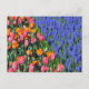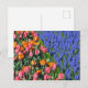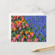 Färgstarka vår-tulpaner och vykort för blommigt av muskari.