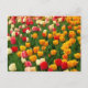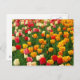 Ett hav av vackra röda, vita och orange tulpaner i fullt.