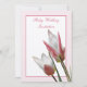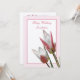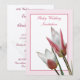 En inbjudan till 40-års bröllopsjubileum med ett foto av ömtåliga karmosinröda och vita tulpaner, placerade på ett metalliskt kartongpapper. Texten är i ett flytande skrivstilstypsnitt med en färg som matchar blommorna. Ett annat kartongpapper, text och bakgrundsfärg kan väljas.