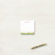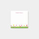 Tulpanillustration av tulpaner i skugga av rosa och gult i gröntens gräs på botten av noterna. Anpassa med ditt namn eller meddelande i teckensnitt för djup rosa lila.