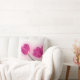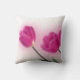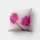 Denna är en vitdekorativ kudde som dekoreras med en fotografera av flera rosa tulpan.