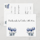 Ge ditt bröllop en elegant och koordinerad look med detta Delft Blå Tulpan-svarskort och menykort. Med en delikat ram av handmålade blå tulpaner och vita blommor inspirerade av traditionellt holländskt porslin, ger detta dubbelbrukskort utrymme för gästerna att svara på din inbjudan och välja sin måltid. Den graciösa designen passar vackert med era övriga bröllopsinbjudningar och erbjuder både funktionalitet och tidlös charm. Helt anpassningsbart för att passa era evenemangsupplysningar.