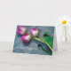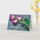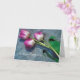 Berevarkort med rosa och vita tulpaner i regnet.