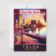 Fånga den lysande hjärtat av slätterna med denna högkvalitativa klassiska turismkonst av Tulsa strandpromenad. Perfekt för ett modernt stadsbröllop eller en save the date-inbjudan med en touch av wanderlust.