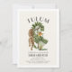 Denna snygga inbjudan till sistervecka har en leopard och resenärspalmträd i akvarell på en ljusbeige bakgrund, infattad i en vit ram. Baksidan har en resplan och QR-kod. Anpassa den efter dina behov. Du hittar matchande produkter i min butik.