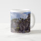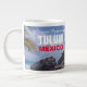 Giant Coffee Mugg med Mayan pyramids av Karibiska havet i Tulum, Riviera Maya, i Mexiko