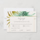 This tropical beach wedding RSVP enclosure card features a beautiful green-and-gold watercolor palm foliage background. As well as elegant text and modern script typography. This wedding suite is named after Tulum Mexico because it's perfect for a beach destination or summer wedding.
