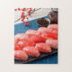 Red, rich, and ready to piece together—this puzzle celebrates maguro in all its glory. A beautifully composed platter filled with akami, chutoro, and otoro, this image bursts with color and depth, making it a vibrant challenge that tuna enthusiasts won’t be able to resist.