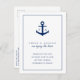 Nautisk spara datumet på vykortet med ett marint blåankare med monogrammet på vardera sidan. Nedan står ditt namn och ord, "är gifter sig", innanför ett gräns, över en vit bakgrund. Lägg till din returadress och ditt personliga meddelande längst bak. Det här är perfekt för ett badbröllop på sommaren.