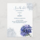 Tungt blått Blommigt enkelt spara datum efter kort med marin blå text och vattenfärgskornblomma