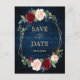 Mörk marin blå burgundblått blommigt spara vykort med elegant bukett av marinblått, royal blått, vitt, , burgundy, marsala ro och sage grönt eucalyptus löv och elegant guld glitter neutralt ram . Kontakta mig om du behöver hjälp med anpassning eller om du behöver någon annan produkt med den här designen.