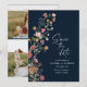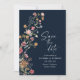 Tunga blå Wildblomma sparar datumet med fotokort. Den här inbjudan från snyggt & elegant bröllop innehåller fantastiska, handmålade vattenfärger Wildblommor. Sök efter matchande objekt i Dreams-samlingen för marinblå blommor.