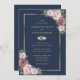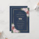 Tunga Blå Rosa Guld Blommigt Bröllop Inbjudningar