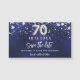 En modern och elegant Spara datum magneter för 70:e födelsedagsfesten. En marin blå bakgrund med faux silver-stjärnor. Anpassa och lägg till ett datum och namn. Den blå färg är ojämn. Texten: Spara datumet skrivs med ett stort trendig-handskript i stil.