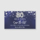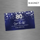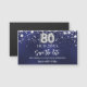 Ett modernt och elegant Spara datum magneter för 80:e födelsedagsfesten. En marin blå bakgrund med faux silver-stjärnor. Anpassa och lägg till ett datum och namn. Den blå färg är ojämn. Texten: Spara datumet skrivs med ett stort trendig-handskript i stil.