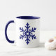Blå och vit jul i mugg har en enkel, enkel snöflake på framsidan och baksidan. Perfektens vinter-helgdag för party eller varje daglig använda. Ta en i varje färg (rött, grönt, isblått, marinblått). Se matchning av artiklar och party i juledekaler i samlingen nedan eller i butiken JoDina Designs.