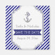 Marginalblått, vitt rand och ankarmagnet bröllop spara datum. En snyggt strimlade mönster-design med marint blått, vitt diagonalt rand, ett ankare med blått hjärta och rep och texten i ram med en banderoll. Modern men med en vintage ser ut på sätt och vis. Du kan ändra bakgrund och text som färg väljer från över 200 färger i diagrammet Zazzle färg. Den här klassdesignen är en fullständig mall för anpassade och ingår i en perfekt för bröllop under en sommar-bröllop.