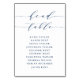 Tunga, blått, minimalistiskt skript, sittande Bröl Bordsnummer